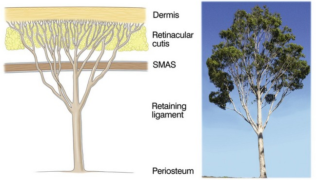 유지인대 와 깊은 관계가 있습니다. 피부에는 뼈와 강하게 연결된 인대조직이 있습니다. 인대조직은 뼈에 고정되어있어서 피부가 노화 등의 이유로 쳐지게 되면 피부가 아래로 흘러가며 주름이 형성됩니다.