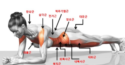 코어근육이 약해지면 장기를 지탱해지는 힘이 줄어 복부전반의 두께가 넓어집니다.이것을 잡는 플랭크는 허리통 수축에 좋은 영향을 줍니다.