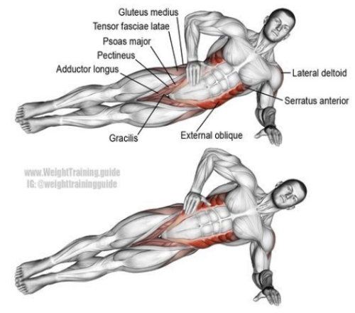 2. 복사근(외복사근/내복사근)의 강화로 척추와 골반의 안정을 잡습니다.