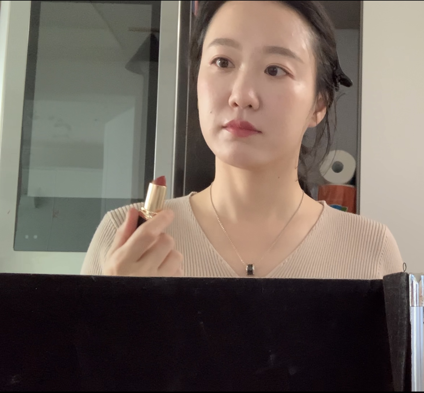 입술색이 전체적 무드에서 중요하다