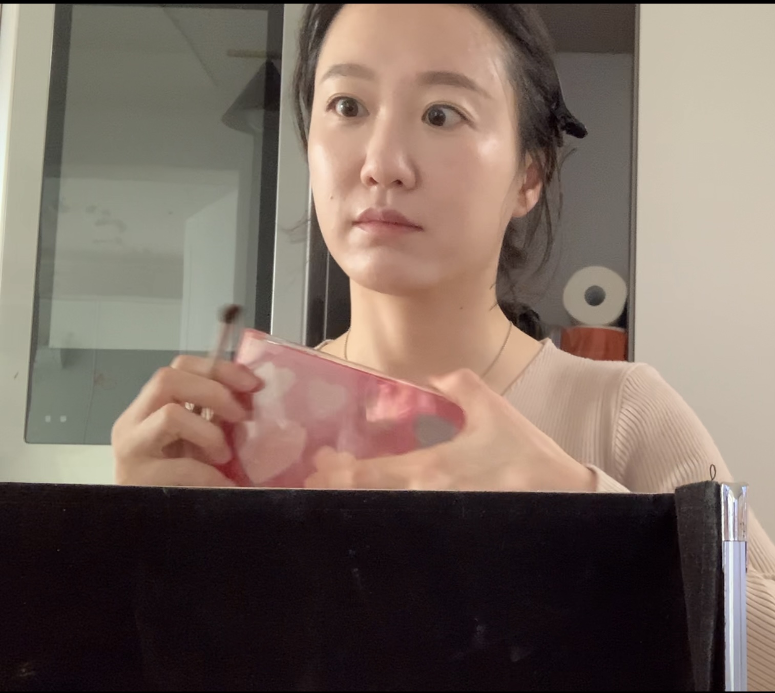 웜톤 블러셔를 얇게 그려서 살짝 색을 띄어올린다.