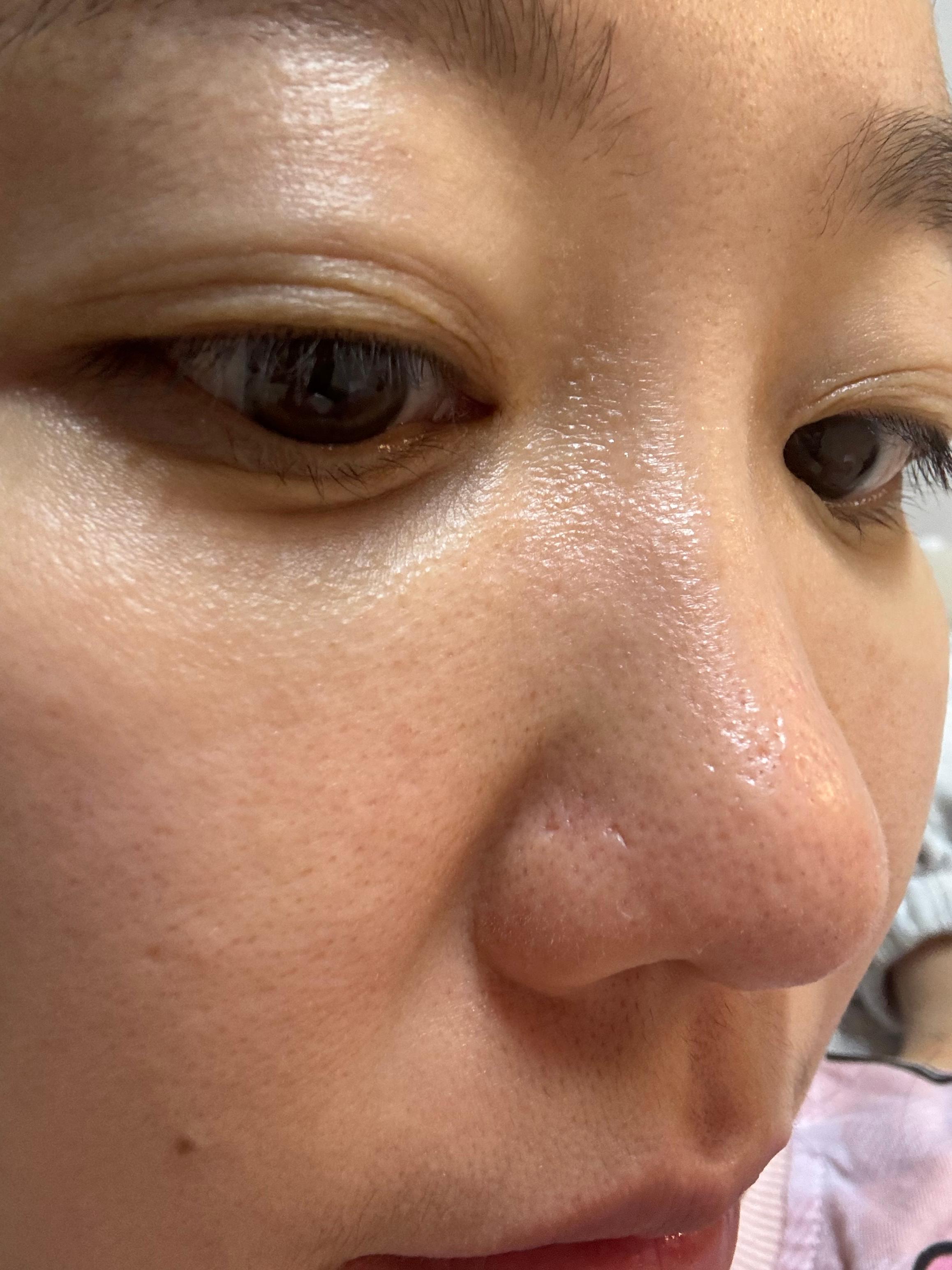 진짜 맨얼굴 모공투성이 얼굴에 다른거 하나도 안바르고 프라이머만 도포했을때의 모습입니다.